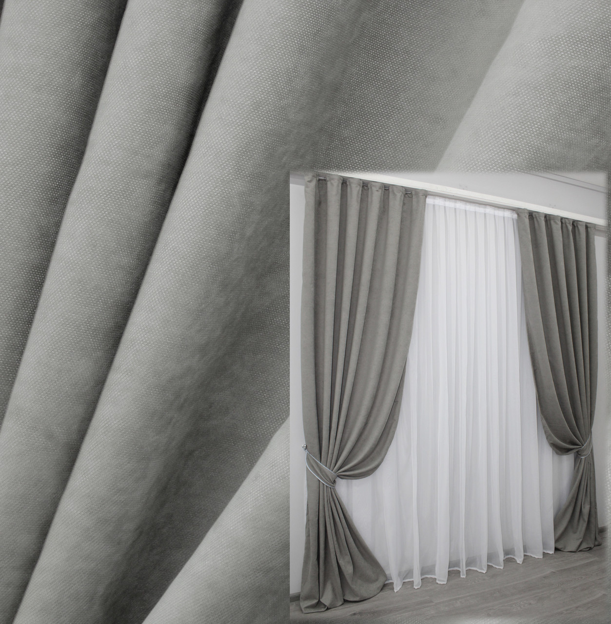Уцінка! Комплект (2шт. 1,5х2,8м.) штор із тканини мікровелюр SPARTA. Колір сірий. Код 966ш 39-525